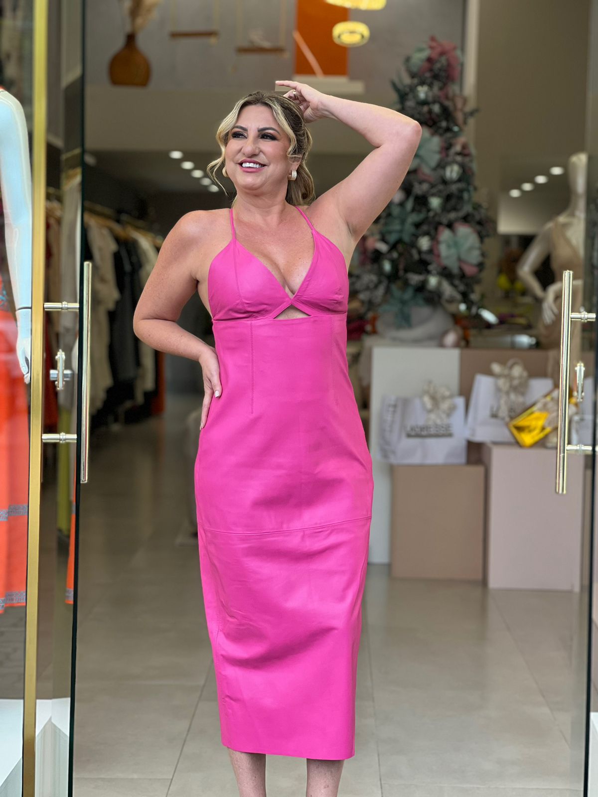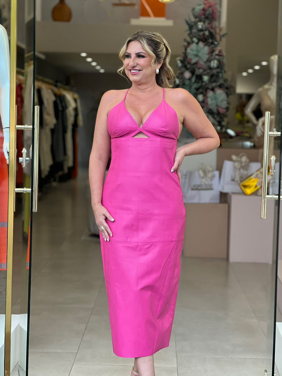 VESTIDO COURO ANIMALE PINK
